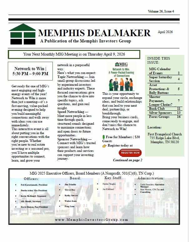 MIG exists to serve the Memphis-area real estate investment community. Our mission is to provide our members the education, training, motivation and networking opportunities that will further the ethical investment in real estate.